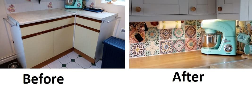 ✅ THE INTERIOR DECORATING MUST-HAVE SOLUTION – For those who want some color in their kitchen or bathroom, these tile transfer stickers, printed in high resolution using new technology are all you need to give any tiled surface a whole new look. One pack includes 18 tiles, and they come in 15cm x 15cm size to fit your existing tiles or 10cm x 10cm.